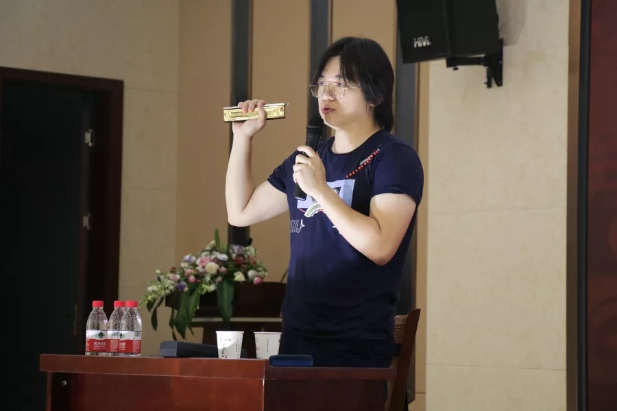除了演奏口琴外,白燕生老師還著(zhù)重介紹了天鵝新型的大和弦、大貝司口琴,天鵝樂(lè )器秉持著(zhù)始終堅持產(chǎn)品創(chuàng )新的初心,生產(chǎn)出了帶有麥克風(fēng)的獨特口琴,在音樂(lè )的道路上一直砥礪前行。