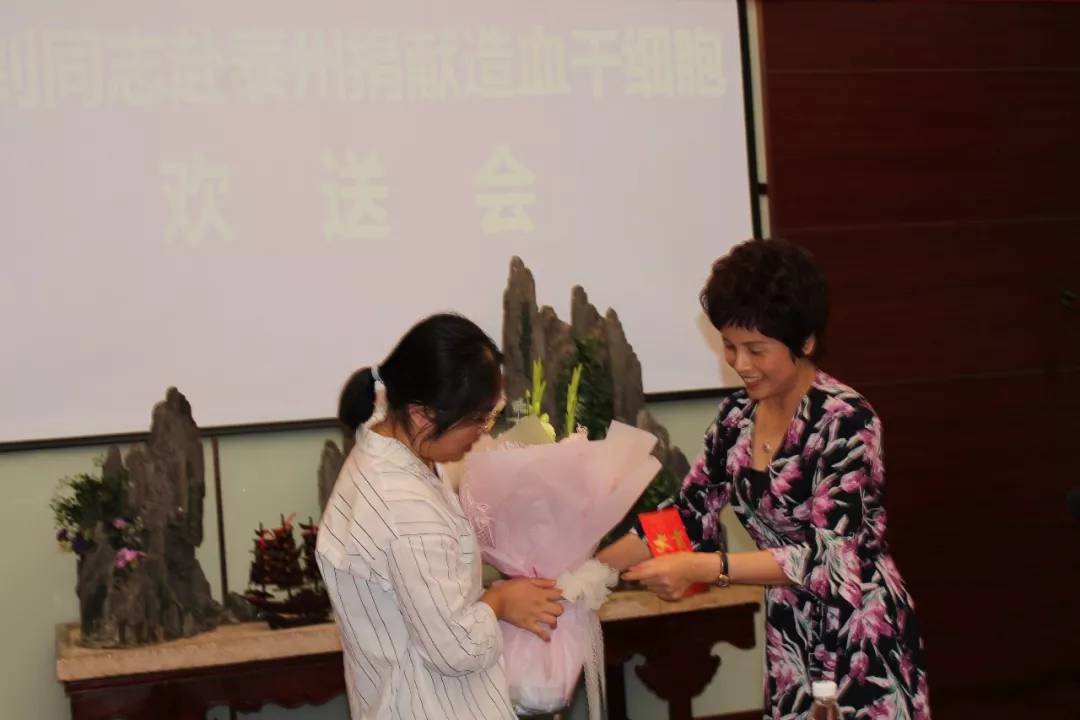 10月7日下午,天鵝公司舉行馬釗同志赴泰州捐獻造血干細胞歡送會(huì ),馬釗作為天鵝公司新產(chǎn)品車(chē)間的一名普通員工,更是一位熱血奉獻青年,是靖江第5位捐獻造血干細胞的志愿者,她的這種大愛(ài)精神讓靖江人為之感動(dòng),天鵝公司的家人們都為之自豪,董事長(cháng)陳紅梅現場(chǎng)贈與獎金,以表彰馬釗同志“我為人人、互助互愛(ài)”的奉獻精神。
