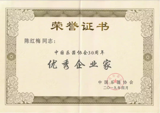 董事長(cháng)陳紅梅獲得樂(lè )器行業(yè)“優(yōu)秀企業(yè)家”稱(chēng)號