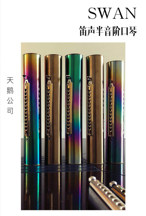 2017年天鵝推出了笛聲口琴,這個(gè)原理是將三個(gè)八度口琴嵌入到一個(gè)更大的金屬管中,以利用管道的內部共振,從而產(chǎn)生更圓潤和有內部回聲的聲音。原理類(lèi)似Koch horn chromatic。即使在這種情況下,管道兩邊都有開(kāi)口。這款笛聲口琴在2017年獲得實(shí)用新型專(zhuān)利,專(zhuān)利號為:ZL201720578099.2。