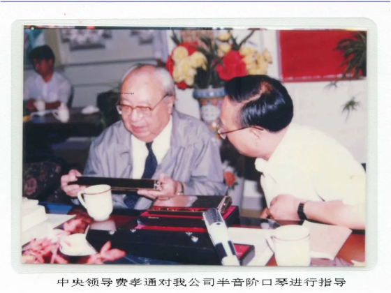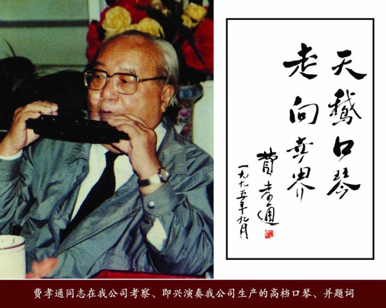 1995年5月,原中央政協(xié)委員費孝通來(lái)我公司視察,即興演奏口琴并題詞